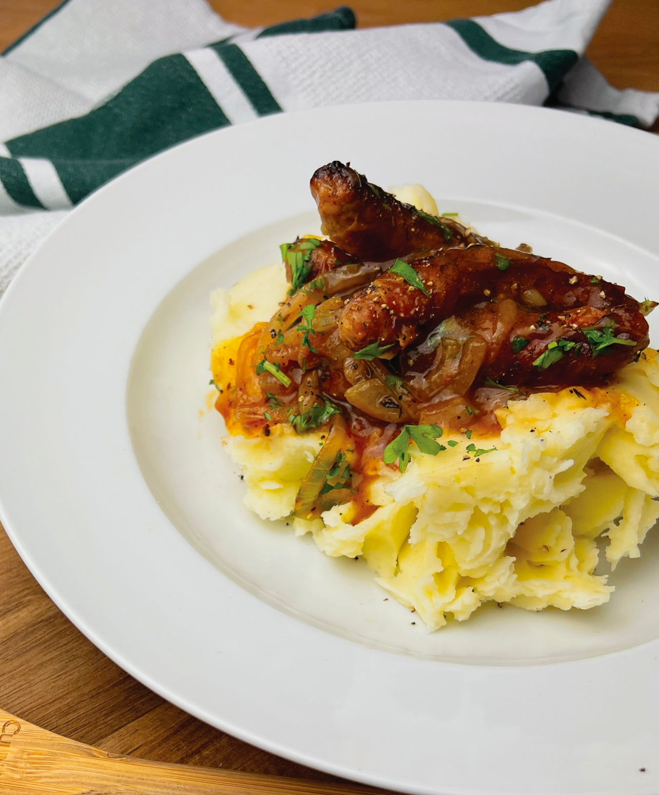 Comfort food for the family, bangers and mash tick all the boxes! Quick and easy to make, simple ingredients you already have at home, filling and delicious.